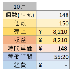 移動時間・発送料などを含めた時給は100~200円程度と想定されるので、